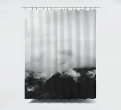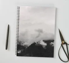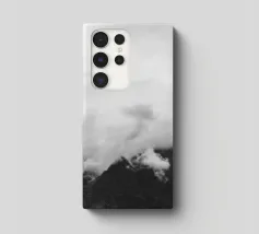 Montagne nebbiose in Pakistan. Scena di natura nella catena montuosa del Karakoram. Nuvole nel nord del Pakistan. Foto di paesaggio in bianco e nero.