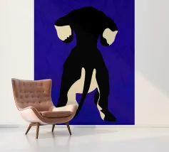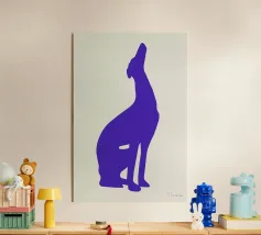 "Sfondo blu: Dog's Point of View" presenta un sereno sfondo blu con la silhouette di un cane da dietro, invitando gli spettatori a vedere il mondo attraverso la prospettiva canina. Un'opera minimalista ma accattivante, perfetta per ogni spazio dedicato agli amanti dei cani.