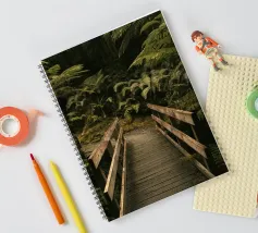 Realizzata in legno o in pietra, si fonde naturalmente con l'ambiente circostante, ricoperta di muschio e toccata dalla luce del sole. Le foglie frusciano delicatamente sopra la testa e l'aria è pervasa dal profumo della terra e degli alberi. Il ponte attraversa un piccolo ruscello o un sentiero, invitando i viaggiatori a fermarsi e a godere della bellezza pacifica della foresta.