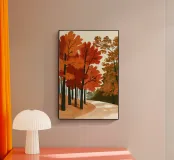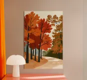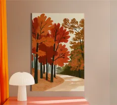 🍂 Magia del bosco autunnale per la vostra casa Questa suggestiva opera d'arte raffigura un sentiero incantato nella foresta in un autunno dorato. Con i suoi rossi, arancioni e gialli vibranti e le sue pennellate strutturate, l'illustrazione cattura il calore e la profondità di una passeggiata tra le foglie fruscianti. L'aspetto stilizzato e disegnato a mano conferisce al motivo un'atmosfera affascinante, quasi fiabesca, perfetta per chi ama la natura e l'intimità. Ideale come poster per soggiorni, corridoi o spazi di lavoro creativi.
