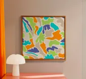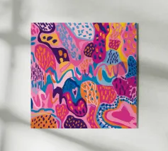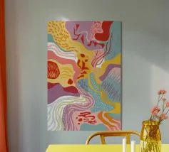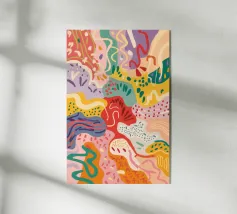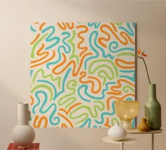 Questo disegno presenta una composizione astratta di linee e forme organiche in colori vivaci. Le transizioni fluide e la disposizione armoniosa conferiscono al motivo un'aura calmante e meditativa.