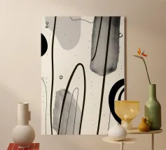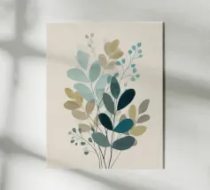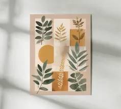 Forme astratte ad acquerello ed elementi botanici plexiglass