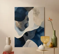 Immergetevi in un mondo di movimento fluido e tinte serene con questa opera d'arte astratta dalle forme blu. Le forme dinamiche si intrecciano, evocando profondità e tranquillità, mentre i ricchi gradienti creano un'esperienza visiva ipnotica. Un perfetto equilibrio di energia e calma, che invita a infinite interpretazioni e ispirazioni.