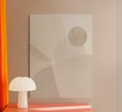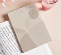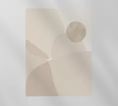 A minimalist composition featuring overlapping organic shapes in soft, neutral tones. The design exudes calmness and simplicity.