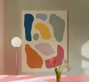 A balanced composition of abstract, organic shapes in a muted, earthy color palette. The artwork is modern, sophisticated, and brings a sense of natural, calming energy to a space.