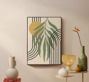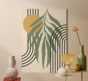 forme astratte foglie linee geometriche linee ad arco cerchio giallo