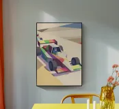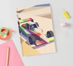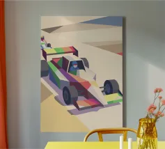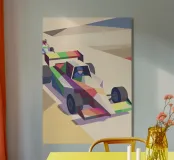 Scoprite un'illustrazione digitale di auto di Formula con uno stile artistico moderno, dinamico ed energico.