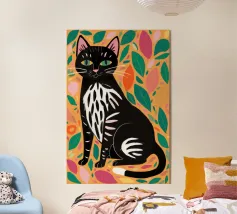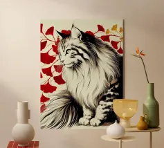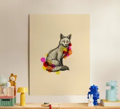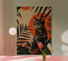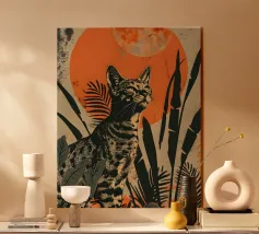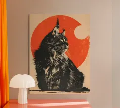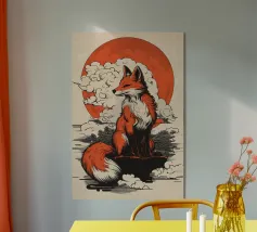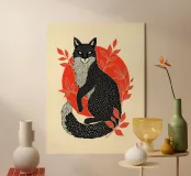 Aggiungete un'eleganza selvaggia al vostro spazio con questa stampa d'arte di volpe in stile linoleografico. Caratterizzata da una volpe nera con intricati dettagli di pelliccia bianca, incorniciata da foglie botaniche rosse e da un sole in grassetto, questa opera unisce il fascino dell'arte popolare al minimalismo moderno. Perfetto per gli appassionati di stampe naturalistiche, decorazioni scandinave e arte animale in stile xilografia.