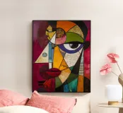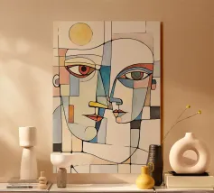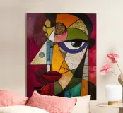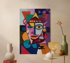 Un ritratto audace e vibrante di ispirazione cubista, ricco di colori e texture. Fragmented Vision reimmagina il volto umano attraverso l'astrazione geometrica: piani sovrapposti di cremisi, ocra, smeraldo e viola creano un senso di complessità emotiva e dinamismo moderno. L'occhio espressivo attira l'attenzione, ancorando il caos in un unico momento di consapevolezza. Un pezzo forte per gli amanti dell'arte contemporanea e astratta.