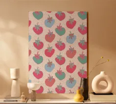 Le fragole a puntini con margherite su sfondo viola sono un disegno di tendenza. Aggiunge un tocco magico e vibrante a qualsiasi prodotto ed è particolarmente accattivante con la sua tavolozza di colori vivaci.