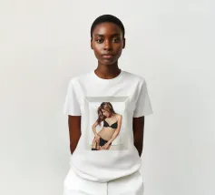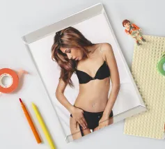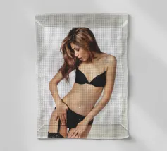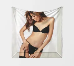 Uno scatto glamour di Sahara in lingerie incorniciato da una cornice di vetro