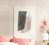 Composizione astratta in grigio e beige con una sottile linea nera