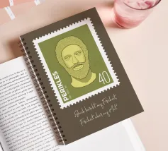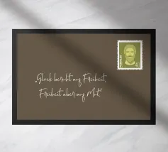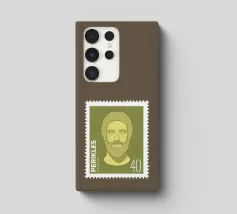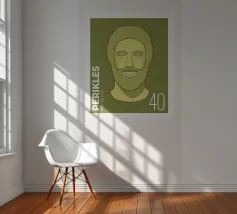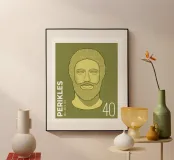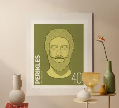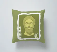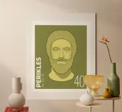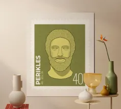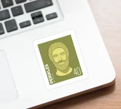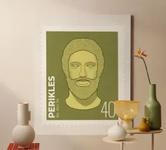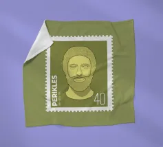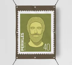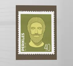 Illustrazione di un francobollo con l'immagine del filosofo Pericle su sfondo trasparente. Il colore dello sfondo può essere personalizzato.