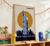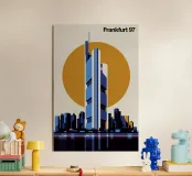 This image features a modern interpretation of Frankfurt’s skyline. The geometric design adds a contemporary touch, making it a perfect piece for architecture enthusiasts and city lovers. Ideal for adding a stylish, urban vibe to any space.