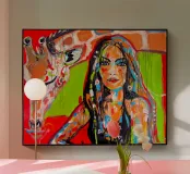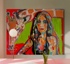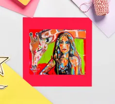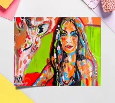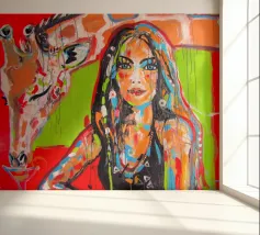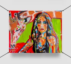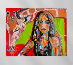 Frau mit Giraffe plexiglass