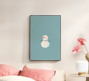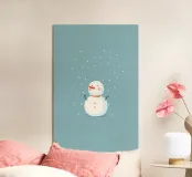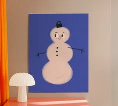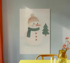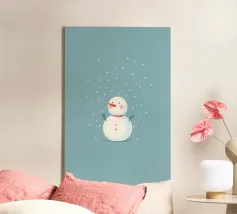 A playful and heartwarming winter scene featuring a quirky little snowman under a gentle snowfall. This minimalist illustration captures the essence of childlike wonder and chilly delight. Perfect for bringing a smile and a touch of seasonal magic to any wall space. Ideal for modern holiday decor, kids' rooms, or cozy winter vibes.