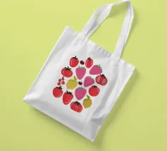 Opere d'arte di frutta colorata con pomodori, fragole, ciliegie e limoni.