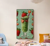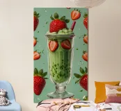 Un rinfrescante frullato verde menta con fragole fresche, servito in un elegante bicchiere, che crea una deliziosa e vivace delizia estiva.