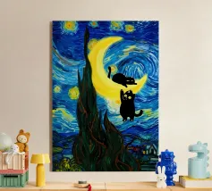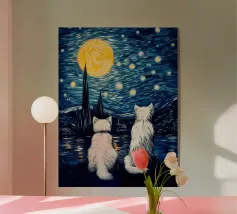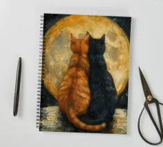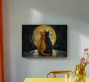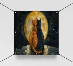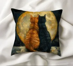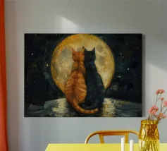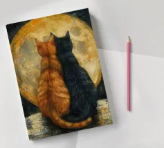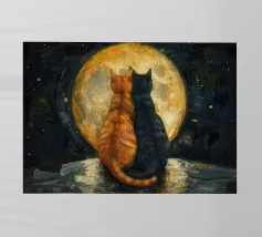 gatti luna notte compagnia silhouette cielo stelle pelliccia code seduto animali amicizia gatto arancione gatto nero struttura riflesso luna luminosa vista posteriore insieme osservazione delle stelle