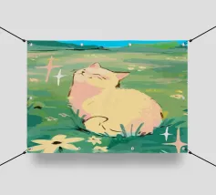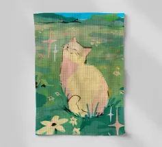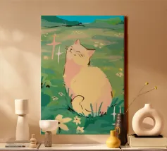 gatto fiori erba prato verde scintille luce del sole natura cielo azzurro relax tranquillità gioia all'aperto baffi pelliccia orecchie coda pacifico estate calore