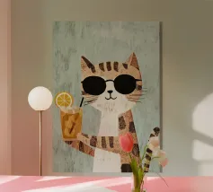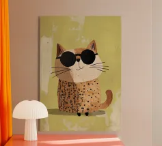 Gatto alla moda, arte per la cameretta dei bambini, stampe animalier