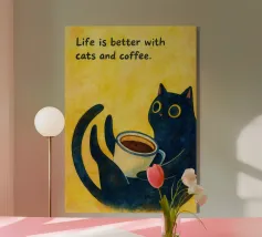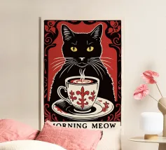 Gatto divertente Una mattina perfetta inizia con una tazza di caffè