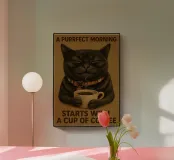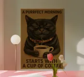 Gatto divertente Una mattina perfetta inizia con una tazza di caffè
