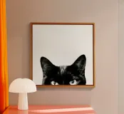 This captivating black-and-white photography print features a detailed close-up of a cat. Perfect for cat lovers, this minimalist kitty portrait adds a sophisticated touch to any home or office decor. Ideal as a gift for pet enthusiasts or as a stylish addition to your art collection.