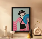 Questa opera d'arte digitale di una geisha è un pezzo di grande impatto visivo che cattura la grazia della cultura tradizionale giapponese. L'artista (kathrinmay) ha utilizzato colori vivaci e attenzione ai dettagli per creare una rappresentazione realistica ed elegante di una geisha.
