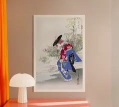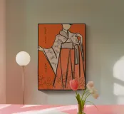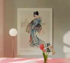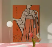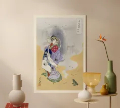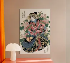 Eleganza audace e grazia senza tempo: questa stampa geisha arancione infonde serenità artistica e un tocco di Giappone.