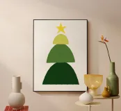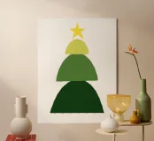 Minimalist Christmas tree art with stacked half-circles and star.