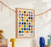 Questo poster di ispirazione Bauhaus presenta forme geometriche colorate disposte in una composizione pulita e minimalista che aggiunge equilibrio, struttura ed energia moderna e giocosa a qualsiasi ambiente. I cerchi, le linee e i blocchi di colore creano un look astratto senza tempo che si adatta agli interni contemporanei, scandinavi e di metà secolo. Perfetto come opera d'arte da parete moderna per soggiorni, studi creativi, uffici o qualsiasi spazio che tragga beneficio da un tocco di design artistico e di vibrante minimalismo.