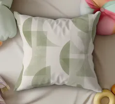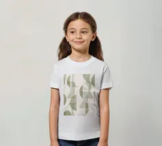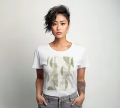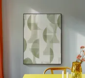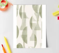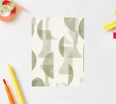 Il disegno presenta un'accattivante disposizione di cerchi, rettangoli e forme astratte di foglie sovrapposte, che alludono sottilmente a forme organiche all'interno della struttura. La texture granulosa aggiunge profondità e interesse visivo.