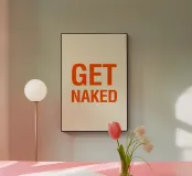 Poster tipografico con la scritta "Get Naked" in una combinazione di colori ad alto contrasto - ideale per il bagno, la camera da letto o un angolo accogliente. Il design combina un umorismo sfacciato con un design chiaro: font sans serif a blocchi, layout audace, combinazione di colori di tendenza. Per tutti coloro che amano il design e non vogliono rinunciare a una strizzatina d'occhio. Questo poster porta un'ironica leggerezza nelle vostre stanze - stampato su carta opaca e robusta. Perfetto come regalo per il partner, il coinquilino o per voi stessi.