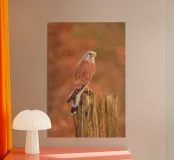 Un gheppio comune appollaiato in un bosco autunnale