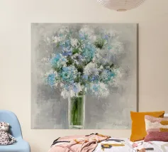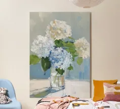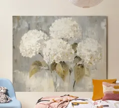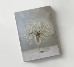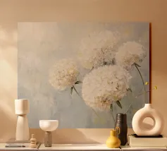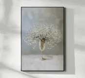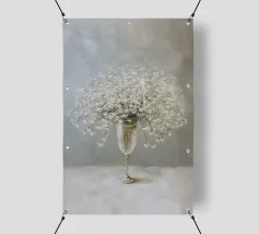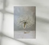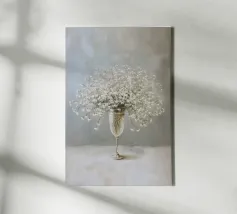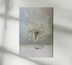 Questo motivo raffigura una delicata composizione di gypsophila in un elegante vaso di vetro su uno sfondo tranquillo color crema. I delicati fiori bianchi sembrano leggeri e fluttuanti e conferiscono all'immagine un'eleganza senza tempo e silenziosa. La tecnica pittorica morbida sottolinea l'atmosfera tranquilla e armoniosa e rende il motivo ideale per ambienti moderni e minimalisti.