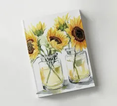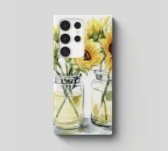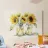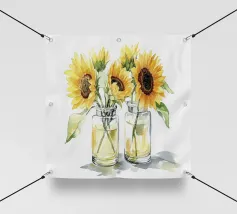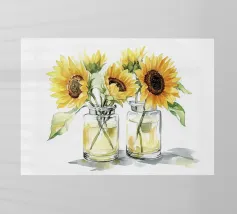 girasoli vasi di vetro foglie steli acqua petali vasi riflesso ombre luce fogliame verde fiori gialli natura botanico composizione floreale natura morta decorazione della casa orticoltura vita vegetale forme organiche