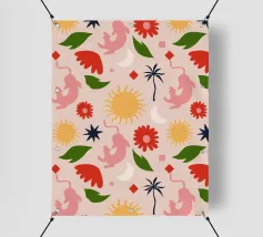 This bohemian-inspired design features intricate patterns and shapes, creating a vibrant tapestry that celebrates the harmony between celestial and earthly wonders. Perfect for those who appreciate eclectic decor and the beauty of nature, this print brings a touch of magic and whimsy to any space.