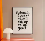 La stampa tipografica I Solemnly Swear That I Am Up to No Good presenta un'audace scritta disegnata a mano in nero su uno sfondo bianco. Questa dichiarazione maliziosa, ispirata al magico mondo di Harry Potter, aggiunge un tocco giocoso a qualsiasi stanza. Perfetta per i fan della serie o per chiunque abbia uno spirito ribelle, questa stampa accattivante fa la sua figura in case, uffici o dormitori. Il contrasto netto e il design elegante la rendono adatta a diversi stili di arredamento, dal moderno all'eclettico.
