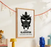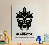 Stampa Gladiatore, Poster cinematografico alternativo, Elmo, Maschera, Design vettoriale minimale, Bianco e nero, Stampe di qualità, Cinefilia, Regalo per appassionati di cinema