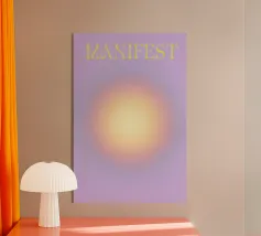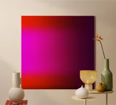 Potente, luminoso, atmosferico: questo motivo glow combina i toni caldi dell'arancione con il rosa intenso e il viola per creare un centro di colore luminoso. Come un centro luminoso, irradia energia, calore e calma allo stesso tempo. Perfetto per ambienti espressivi, studi creativi o come pezzo forte. Fa parte della collezione "Glow Forms", una serie in cui i colori diventano tangibili.
