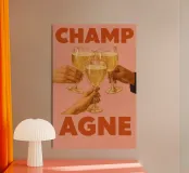 Elegante motivo champagne dal fascino retrò: tre mani che tintinnano su uno sfondo rosa celebrano la vita con bicchieri scintillanti. Questo poster conferisce un'atmosfera festosa a qualsiasi cucina, bar o parete del soggiorno. Perfetto per amiche, buongustai e appassionati di design con un debole per l'eleganza delle bollicine. Stampa artistica di alta qualità per la vostra parete - Salute!