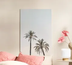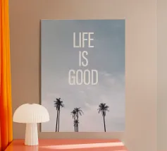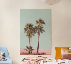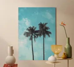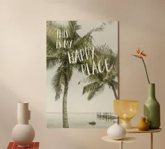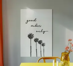 Vista idilliaca sulle palme in uno stile minimalista. SOLO BUONE VIBRAZIONI. Buone vibrazioni, energia positiva e semplicemente una grande atmosfera.