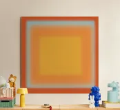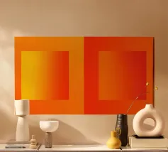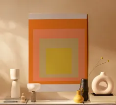 Una serie di rettangoli concentrici in varie tonalità di arancione e rosso creano un effetto gradiente rilassante. Le morbide transizioni tra i colori conferiscono all'immagine un senso di armonia e profondità.