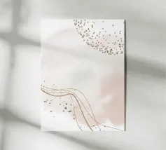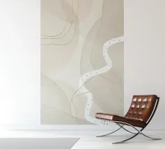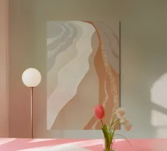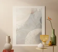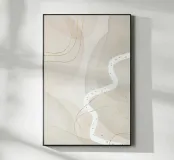 Grafica astratta con linee e forme organiche in beige, rosa e bianco. Perfetta per tutti coloro che amano la neutralità, l'eleganza e il minimalismo. Le linee dorate non brillano sulle stampe corrispondenti, si tratta di una stampa fotografica - ma altrettanto bella.