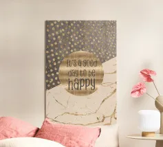 Arte grafica moderna in un'elegante veste dorata ed elementi tipografici. Un design che si adatta al motto della vita. SOLO BUONE VIBRAZIONI.