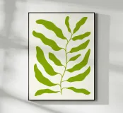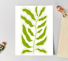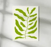 Illustrazione minimalista di un ramo verde con foglie, perfetta per gli amanti della natura e degli interni moderni. Disponibile anche in nero, un eccellente complemento per un elegante set di opere d'arte da parete. Ideale sia per gli stili di arredamento minimalisti che per quelli eclettici, porta freschezza e calma in ogni spazio.
