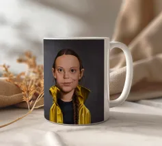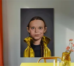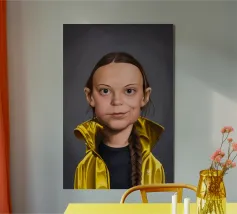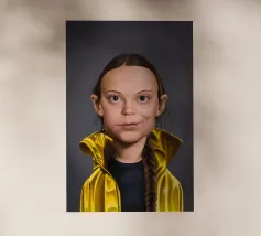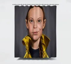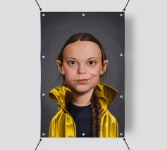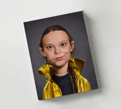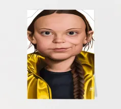 Illustrazione caricaturale umoristica di Greta Thunberg, la nota adolescente svedese a cui va il merito di aver sensibilizzato il mondo sui rischi del riscaldamento globale. Una delle caricature realizzate per la serie Celebrity Sunday, in cui un personaggio famoso viene ritratto nell'arco di una giornata. L'idea è di mostrarli come in una fototessera per avere coerenza.
