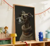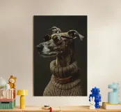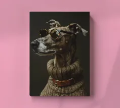 Quest'opera presenta un elegante ritratto antropomorfo in cui la grazia animale incontra l'intelletto umano. La forma allungata e lo sguardo calmo del levriero trasmettono raffinatezza e tranquilla sicurezza, esaltate da abiti sartoriali e occhiali classici. Un'illuminazione morbida e controllata scolpisce la figura su uno sfondo scuro, enfatizzando la struttura, la postura e l'espressione. La fusione di realismo e stile concettuale trasforma il soggetto in uno studio sul personaggio, esplorando l'identità, la dignità e la raffinatezza attraverso un sottile umorismo e la moderazione visiva.