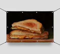 Noah Verrier, uno dei 40 migliori pittori americani di New American Paintings, propone deliziose nature morte di classici comfort e fast food americani. Panini al formaggio grigliato, PB&J o Big Mac prendono vita e fanno venire l'acquolina in bocca. La tecnica magistrale dell'artista di creare contrasti, catturare la luce o far brillare la superficie di una goccia di formaggio è a dir poco magistrale. Noah è un ex professore d'arte e vive con la sua famiglia a Tallahassee. Le sue opere sono state esposte in tutto il mondo, tra cui Giappone, Australia, Germania, India, Canada, Inghilterra e Francia.